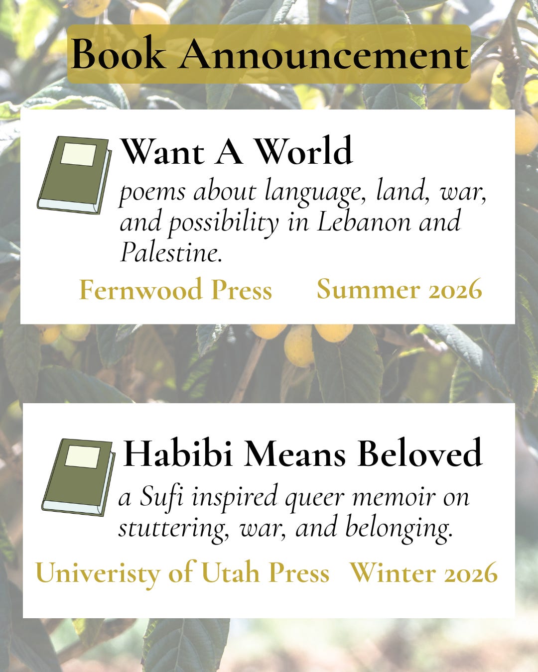 Friends, I've been waiting to share this for a while now. The timing to celebrate this hasn't felt right with all that's going on in the world; the Palestinian genocide, the ledge of authoritarianism we are teetering on, and now the war between Israel and Iran. That's not the full story of the world though. There are also a million beautiful and miraculous things that happen each day, least of which is the fact of our being alive. So perhaps this is the right time to share and celebrate. This is a big milestone in my life, something I've sought and worked towards for a while now. The memoir is a four year work in progress that is quite literally a big piece of my heart. The poetry collection is more recent, but no less heartfelt and honest. It is the one way I know to process and respond to the condition of the world. I've included excerpts; a poem and some words from the preface and introduction. When publication days near, I'll appreciate and value your support in sharing my work. Until then I'll keep sharing poems and loving the world alongside you in the way I know how. If you find this helpful, you can repeat these prayers I say everyday - May all beings be at peace and at ease. Mall being know that they are loved just as they are. May all beings find their true belonging. May awareness dawn in the hearts of all beings.